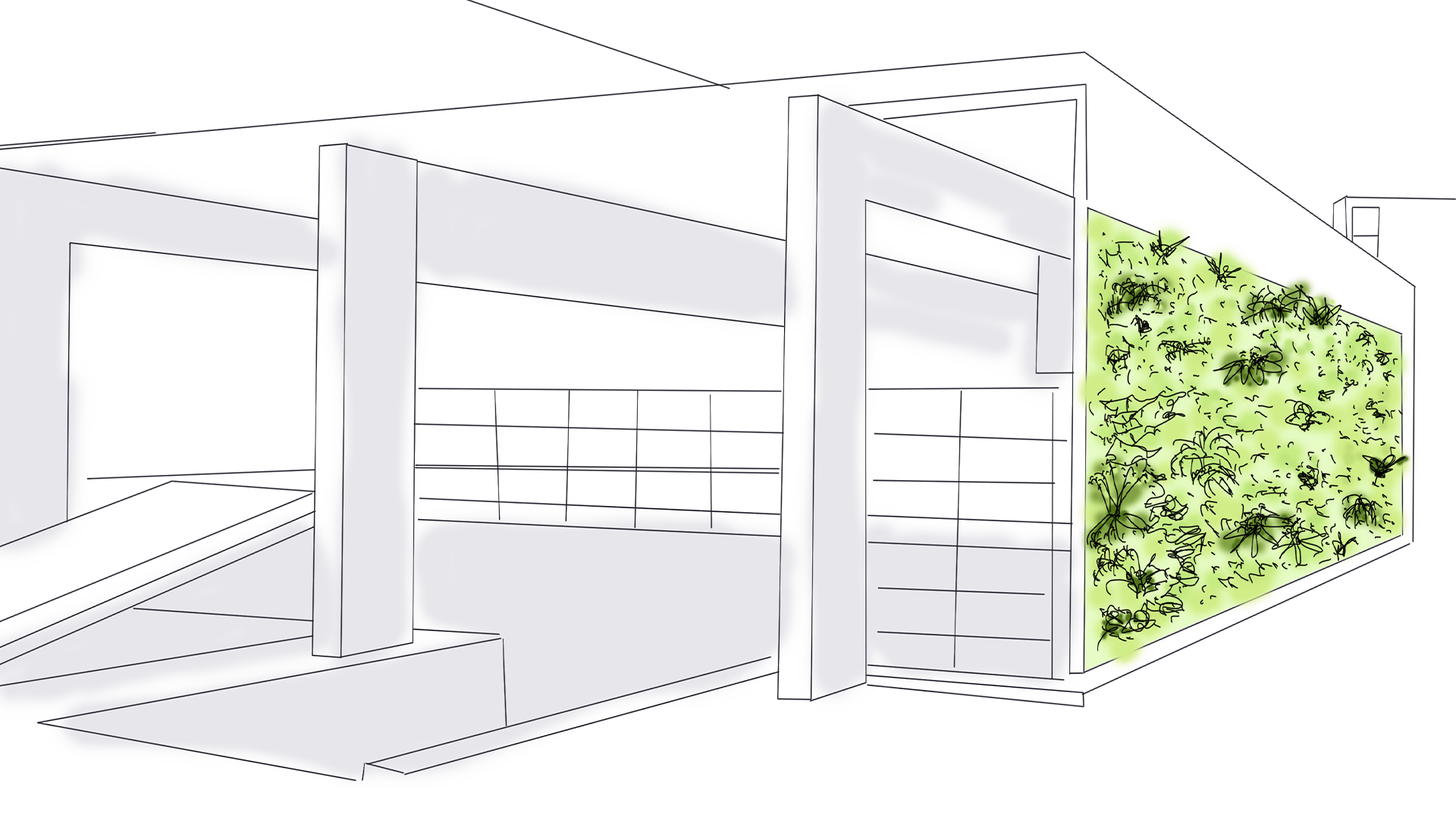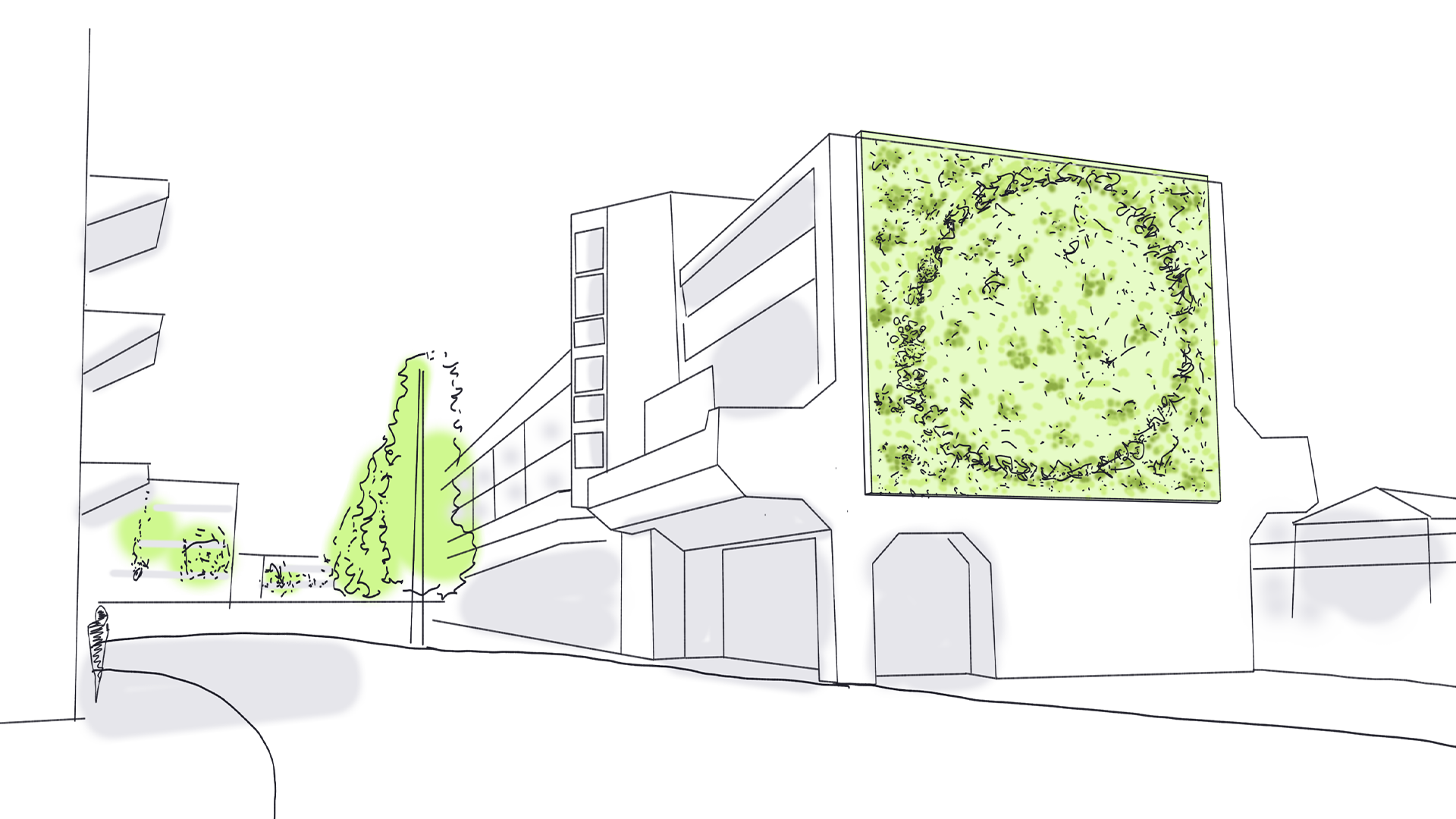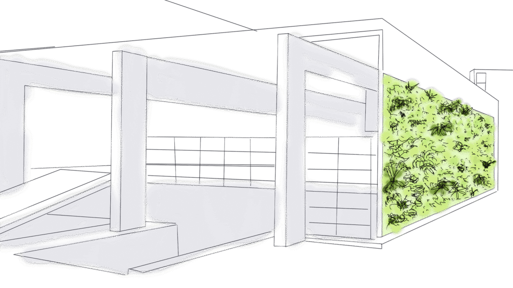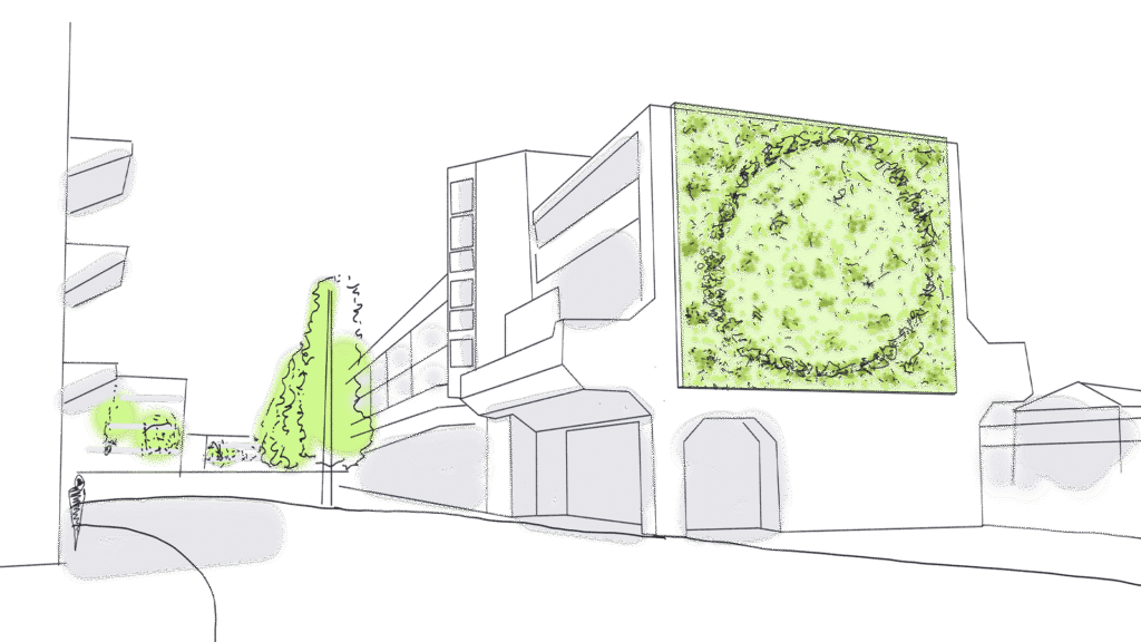 Ein lebendiges Beispiel für klimaresiliente Stadtentwicklung. Als erste realisierte Installation des Urban Greentrails, zeigt das Stadtlabor Vertikalbegrünung die Möglichkeiten der Vertikalbegrünung auf, selbst an bestehenden Gebäuden.